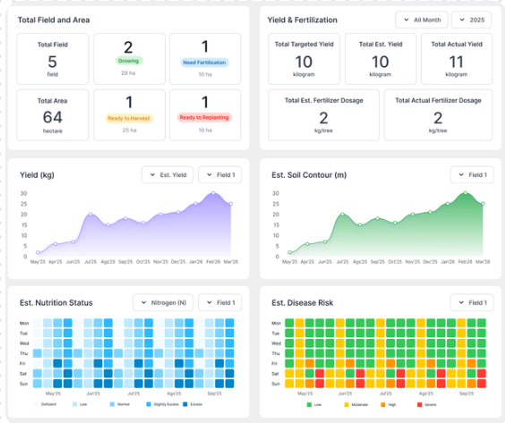 - Applicable to various agricultural areas, from small-scale farms to large-scale plantations, through an interactive dashboard-based system.